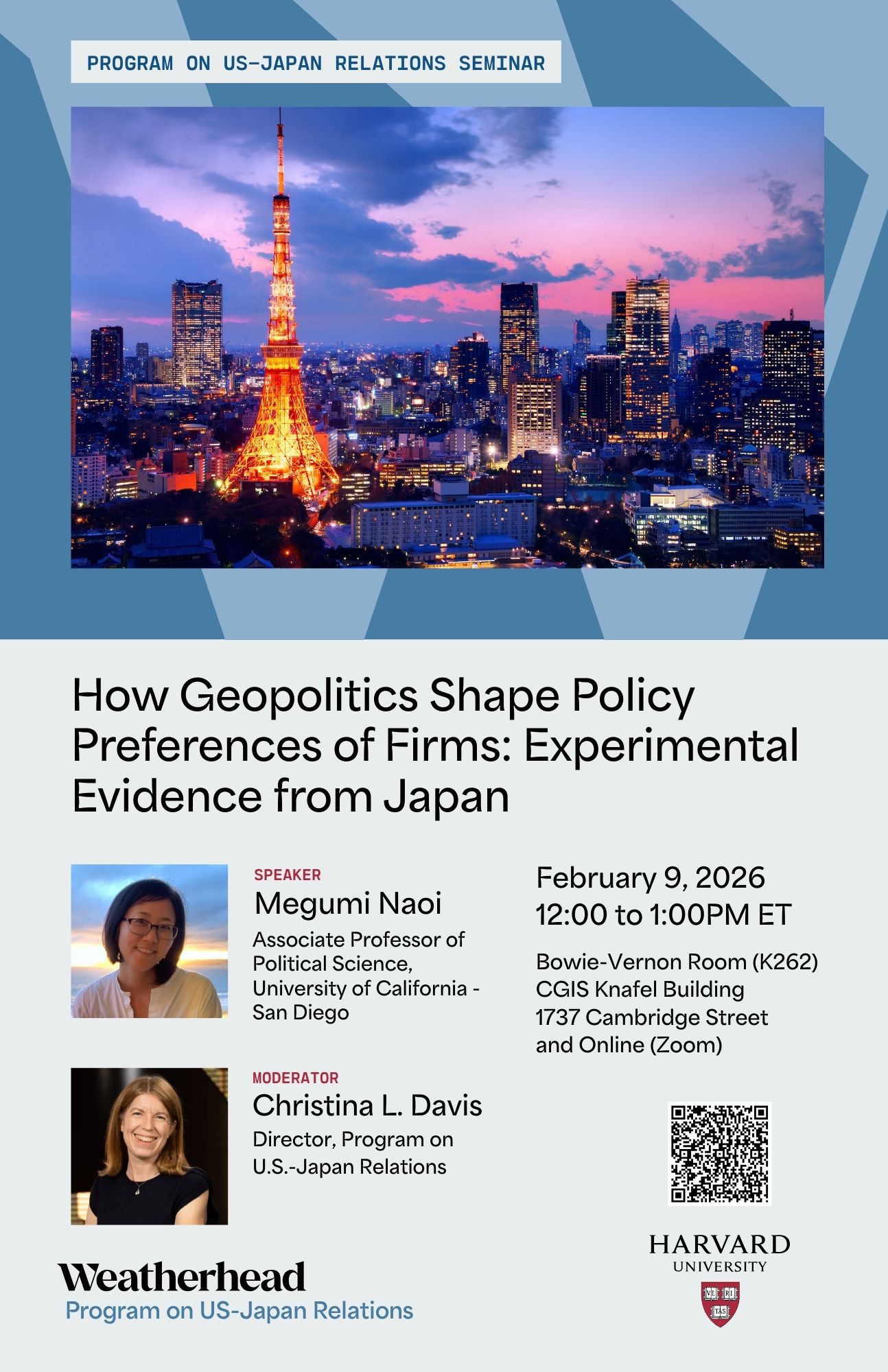 Moderator: CHRISTINA L. DAVIS, Edwin O. Reischauer Professor of Japanese Politics, Department of Government; Director, Program on U.S.-Japan Relations, Harvard University