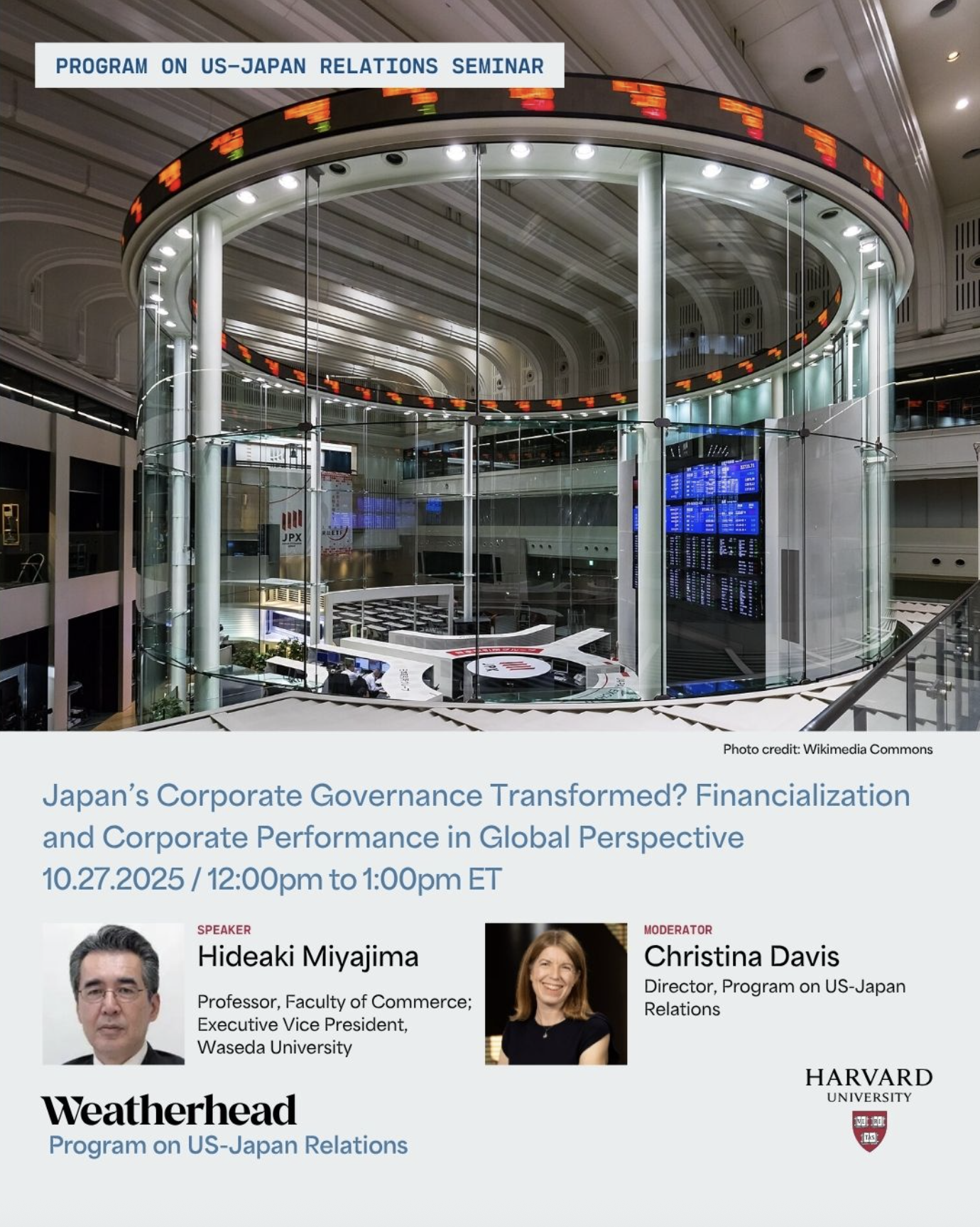 Moderator: CHRISTINA DAVIS, Edwin O. Reischauer Professor of Japanese Politics & Director, Program on US-Japan Relations, Harvard University