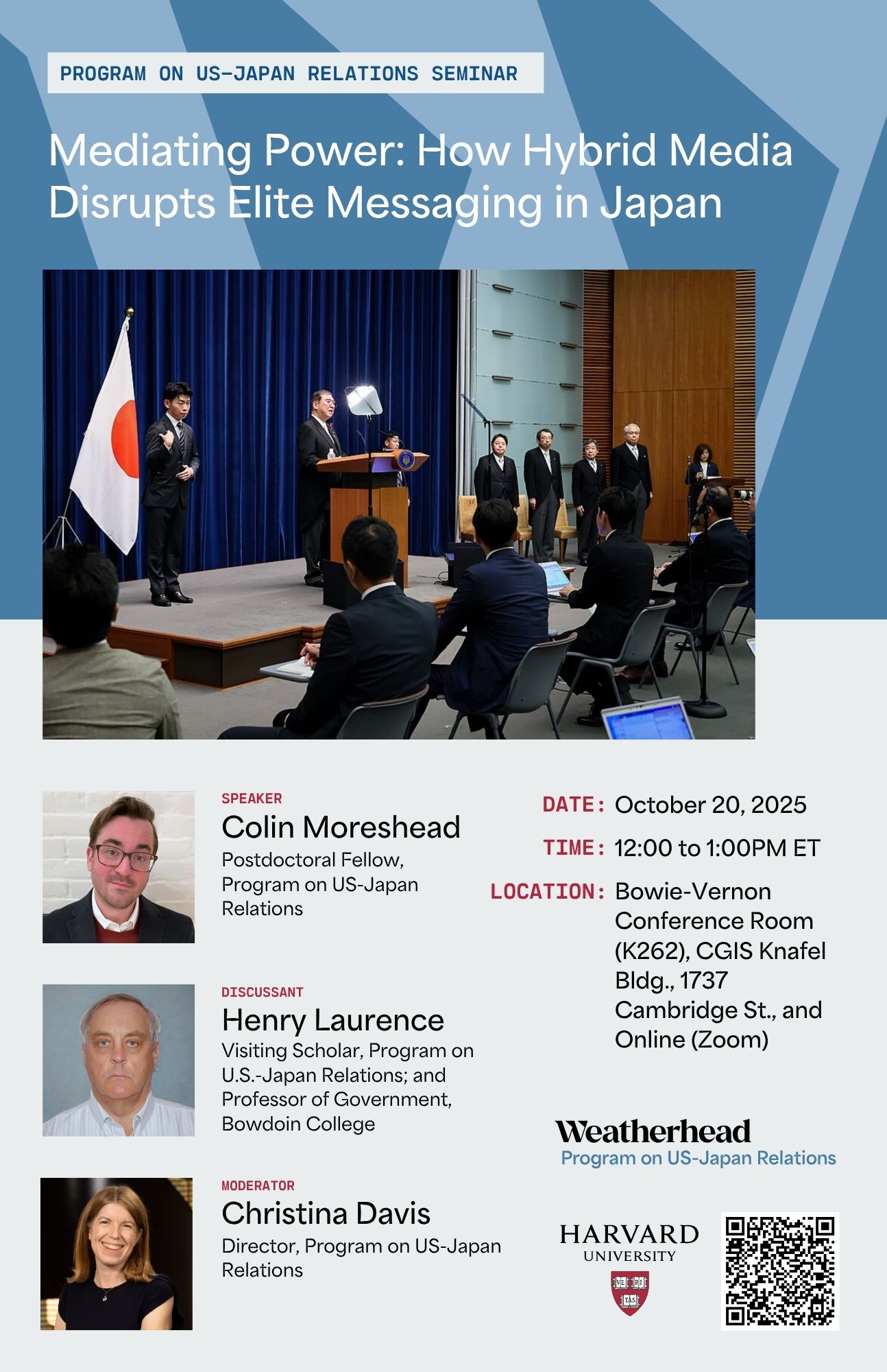 Speaker: COLIN MORESHEAD, Postdoctoral Fellow, Program on US-Japan Relations, Harvard University