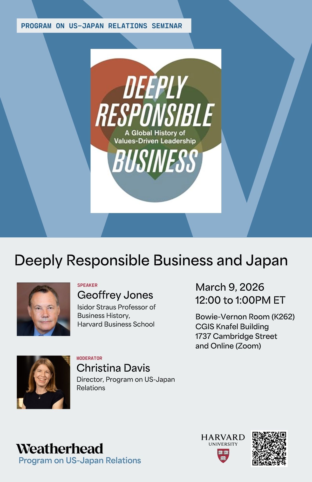 Moderator: CHRISTINA L. DAVIS, Edwin O. Reischauer Professor of Japanese Politics, Department of Government; Director, Program on U.S.-Japan Relations, Harvard University